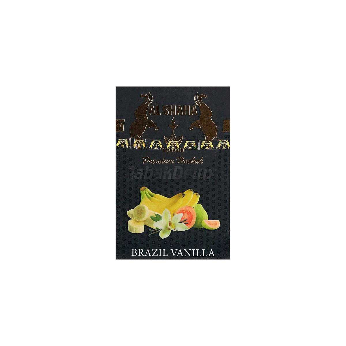 Смак 🍌Банан 🍍Гуава 🍦Ваніль > Тютюн Al Shaha Brazil Vanilla — соковитий і солодкий мікс зі стиглого банана, тропічної гуави та ніжних нот ванілі. Цей тютюн наповнює кальянну сесію екзотичною солодкістю та м’якістю, створюючи атмосферу тропічного задоволення. Ідеальний для любителів десертних і фруктових смаків.